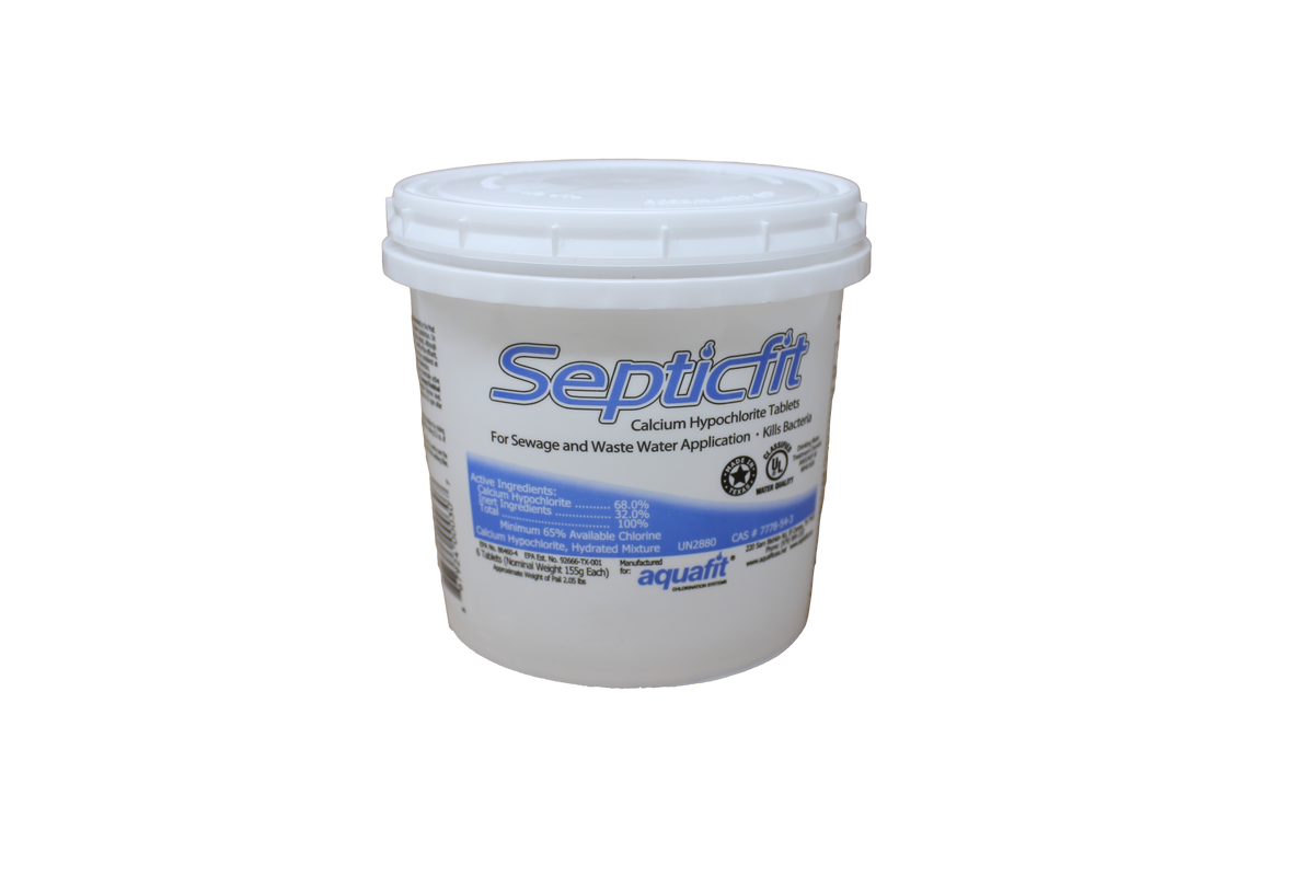 Special Note: As with all chlorine products, Septicfit® is a Hazardous Material and can only be shipped from designated Hazardous Materials shipping centers. These types of products cannot be shipped to Post Office Boxes or by any expedited shipping methods; parcel ground shipments only. The listed price includes any applicable Hazardous Material Surcharge associated with transportation of hazardous materials.
